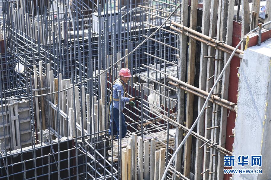 5月31日,工人在乌东德水电站的二道坝工地施工。新华社记者陈晔华摄