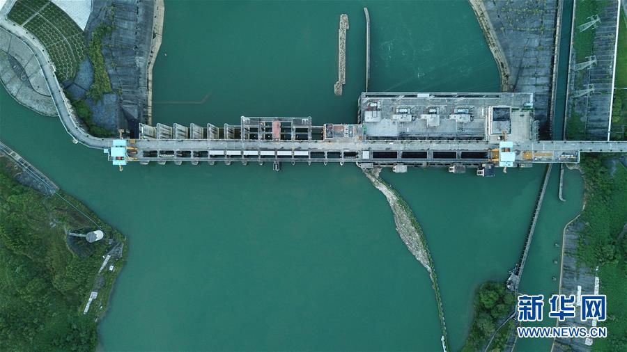 这是位于广西大化县境内的大化水电站大坝(9月19日无人机拍摄)。新华社记者张爱林摄