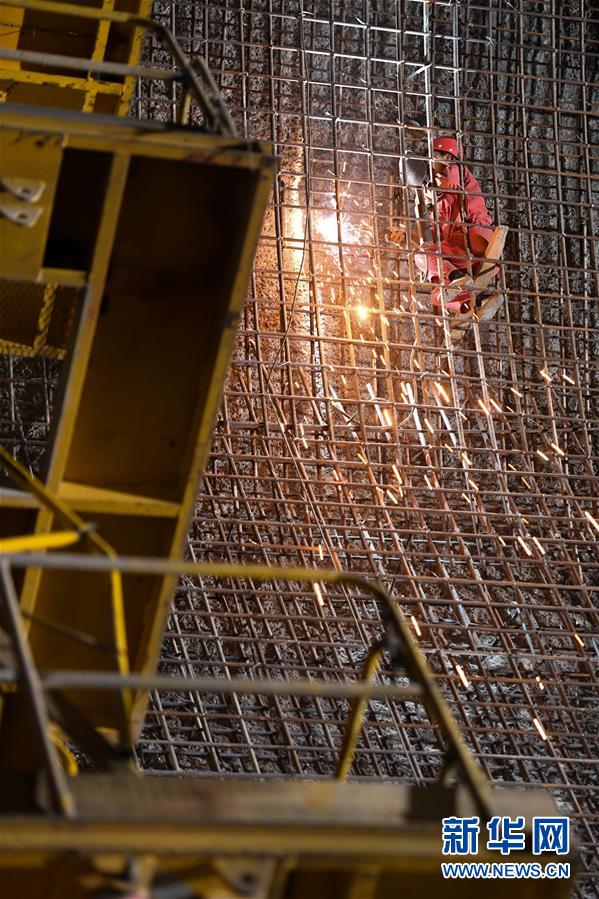 10月6日,工人在大藤峡水利枢纽工程工地上焊接钢筋。新华社记者曹祎铭摄