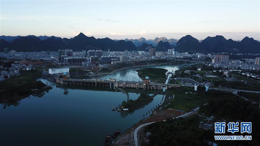 这是位于广西大化县境内的大化水电站(9月19日无人机拍摄)。新华社记者张爱林摄