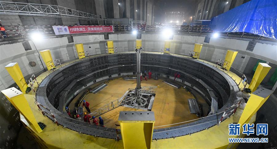 乌东德水电站左岸地下电站主厂房内的6号机组正在建设中(5月30日摄)。新华社记者陈晔华摄