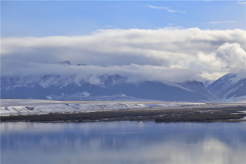 2019年10月6日,甘肃张掖,受冷空气影响,山丹马场迎来降雪降温天气,千里冰封万里银装,一片素裹,宛如仙境。王超/视觉中国 编辑/陈进