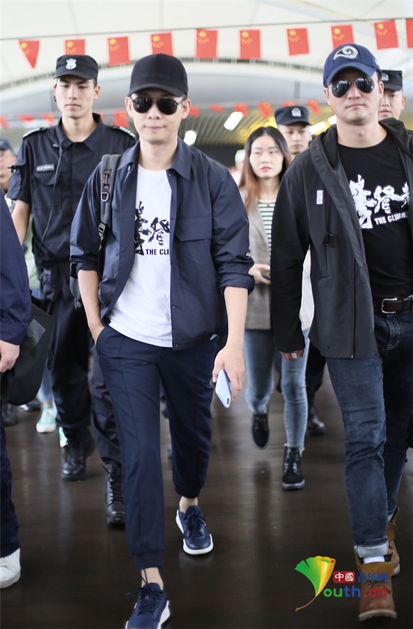 2019年10月7日,长沙,电影《攀登者》四大型男齐齐现身长沙黄花机场,胡歌一袭工装帅气十足,吴京、张译同架黑超酷劲十足,四大型男的出现吸引众多粉丝前来接机!