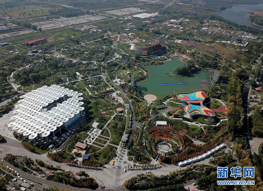 北京世园会园区(10月7日无人机拍摄)。新华社记者王毓国摄