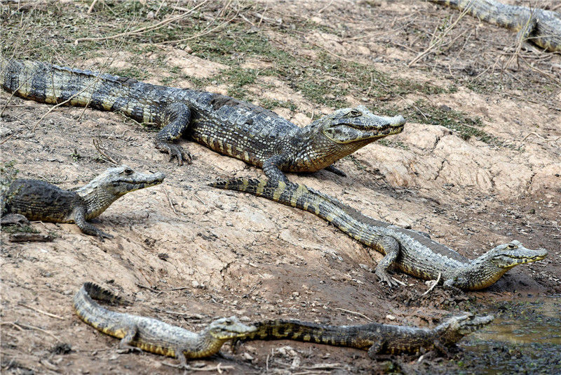 当地时间2016年6月24日,巴拉圭General Diaz,巴拉圭与阿根廷边境遭遇严重干旱,皮科马约河河水枯竭,凯门鳄在水塘内。