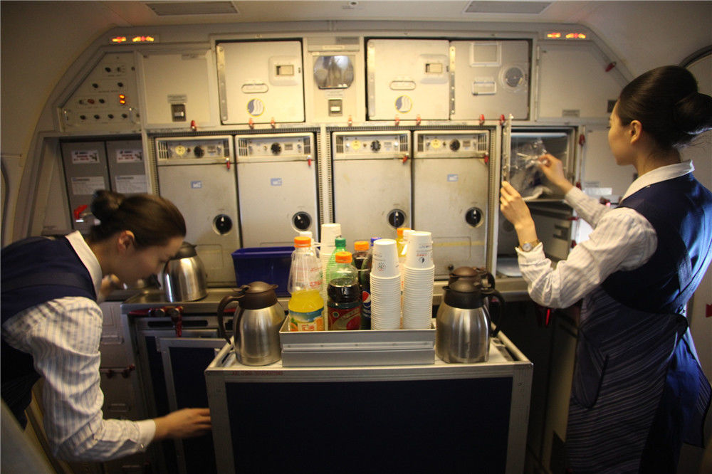 2014年4月27日,山东济南,记者登上山东航空去往广州的航班,用镜头跟随记录空姐不为人知的真实生活。郑涛/视觉中国
