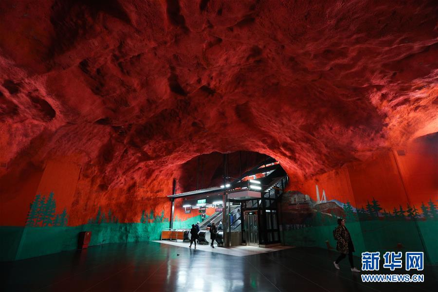 10月8日,在瑞典斯德哥尔摩,乘客在一处地铁站内行走。在瑞典首都斯德哥尔摩,每座地铁站的站台、墙壁及大厅的风格设计都无一相同,各有特色。艺术家们运用了各类艺术元素装点地铁站,色彩缤纷的视觉效果既突出了每个站台的个性,也丰富了乘客的旅途体验。走进斯德哥尔摩地铁,仿佛置身于一座“地下艺术长廊”。新华社记者郑焕松摄