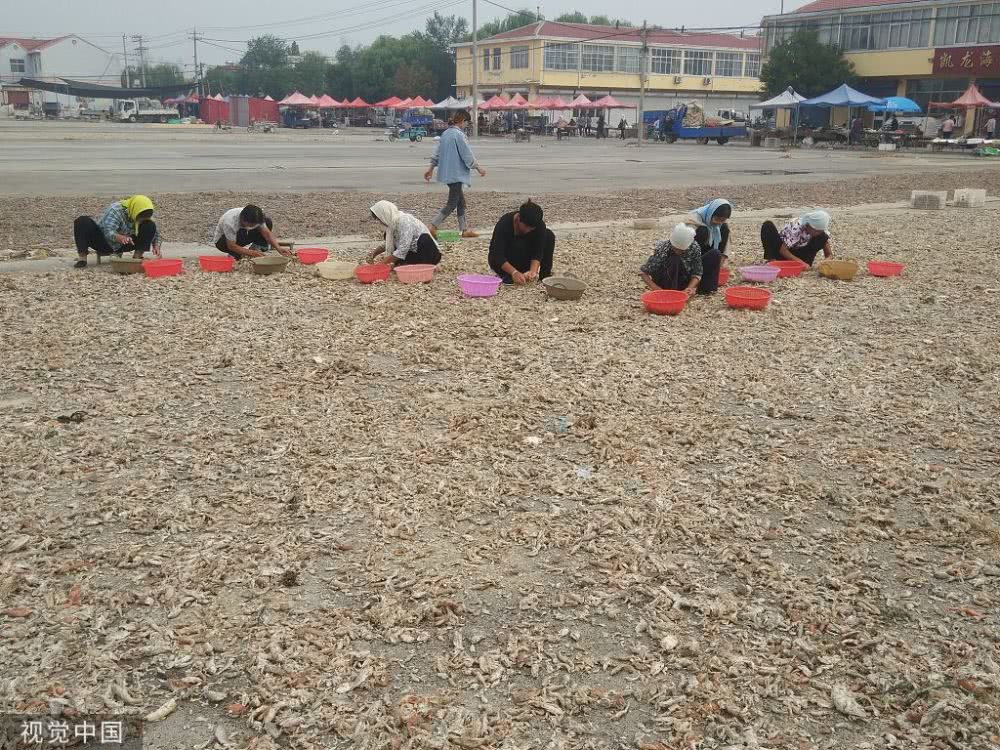 2019年9月13日,农历八月十五中秋节,山东滨州沾化区鲁北海产品批发市场,村民正在分拣货物。