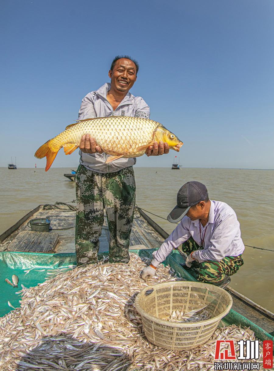 2019年8月24日,江苏省宿迁市泗洪县龙集镇尚咀居洪泽湖水域,渔船点点,鱼虾满仓,整个湖面一片繁忙。