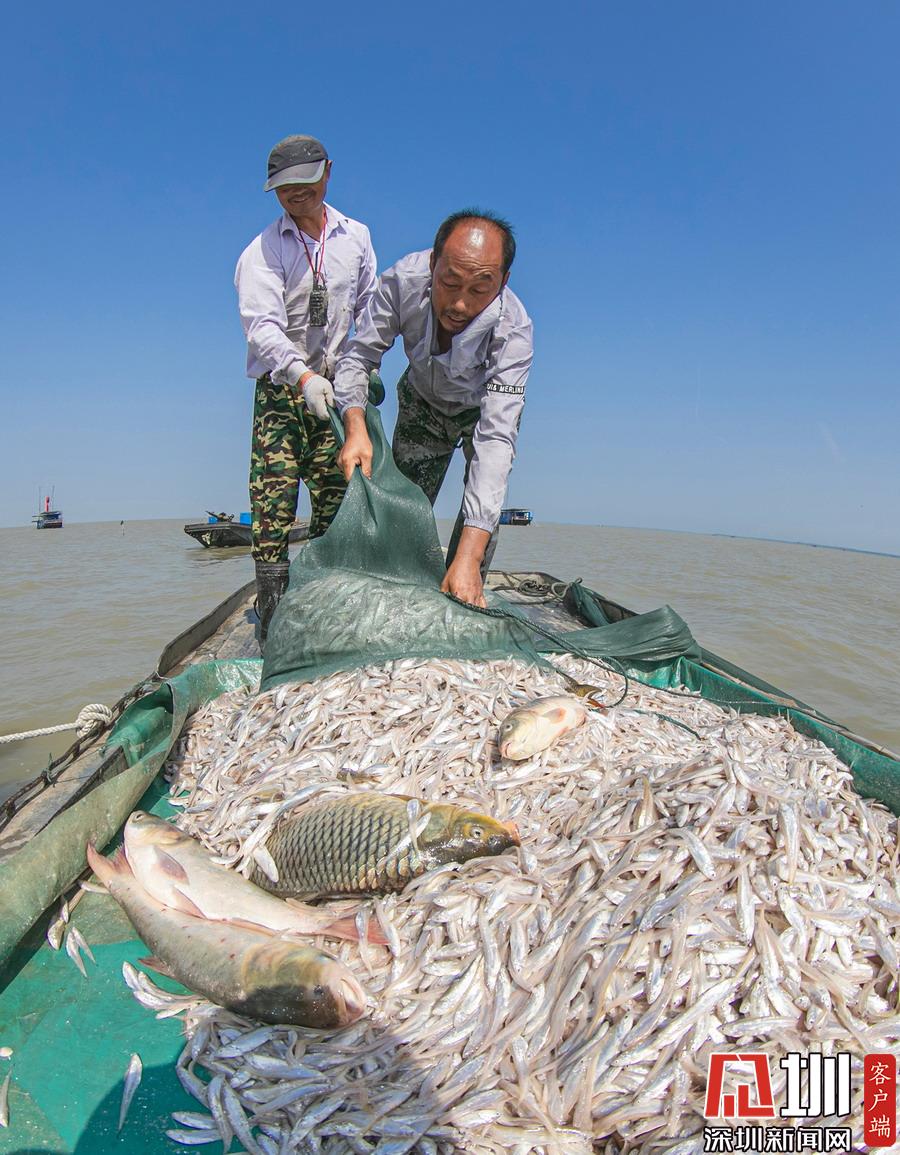 渔民们持证捕捞,依法作业,沉浸在丰收的喜悦之中。