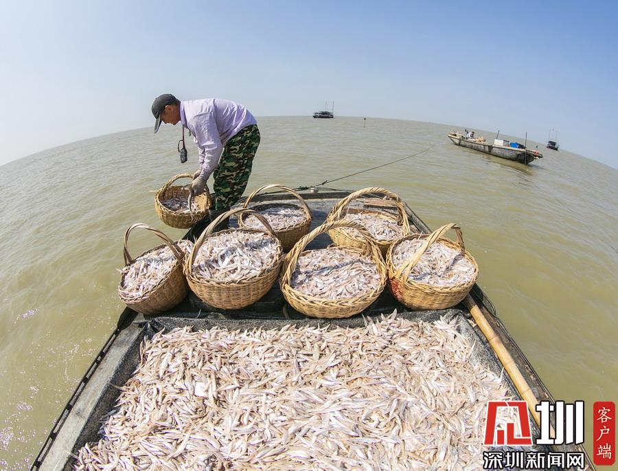 2019年8月24日,江苏省宿迁市泗洪县龙集镇尚咀居洪泽湖水域,渔船点点,鱼虾满仓,整个湖面一片繁忙。渔民们持证捕捞,依法作业,沉浸在丰收的喜悦之中。