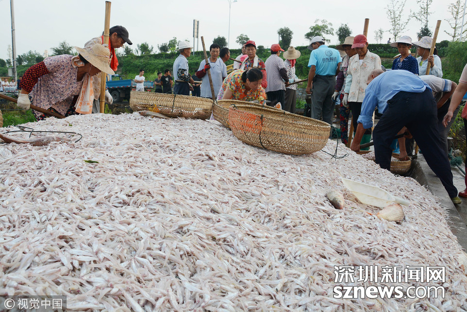 2018年8月16日,安徽巢湖渔民正在装运捕捞上来的毛鱼和银鱼。