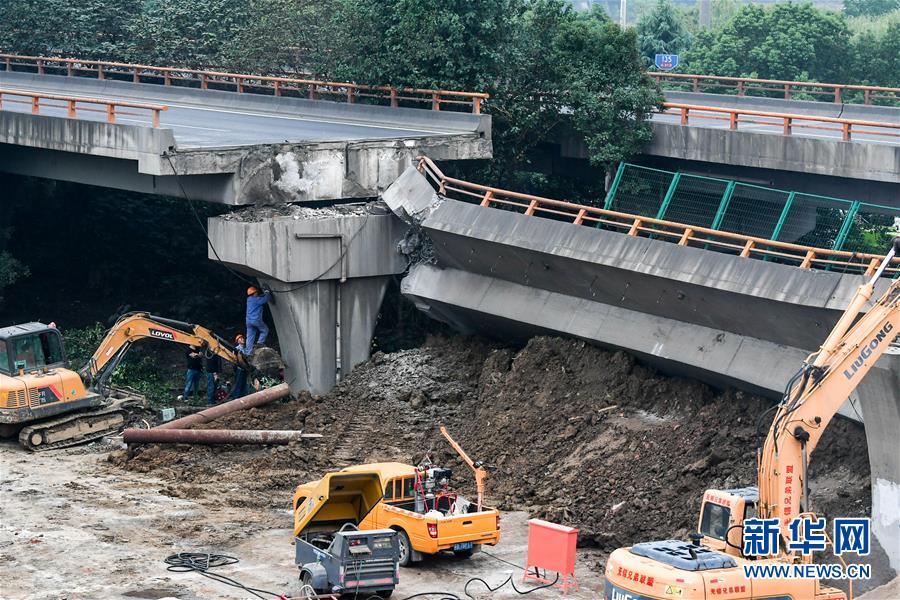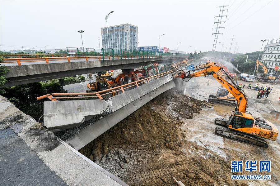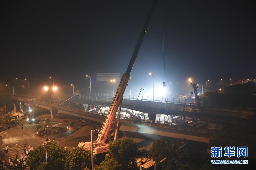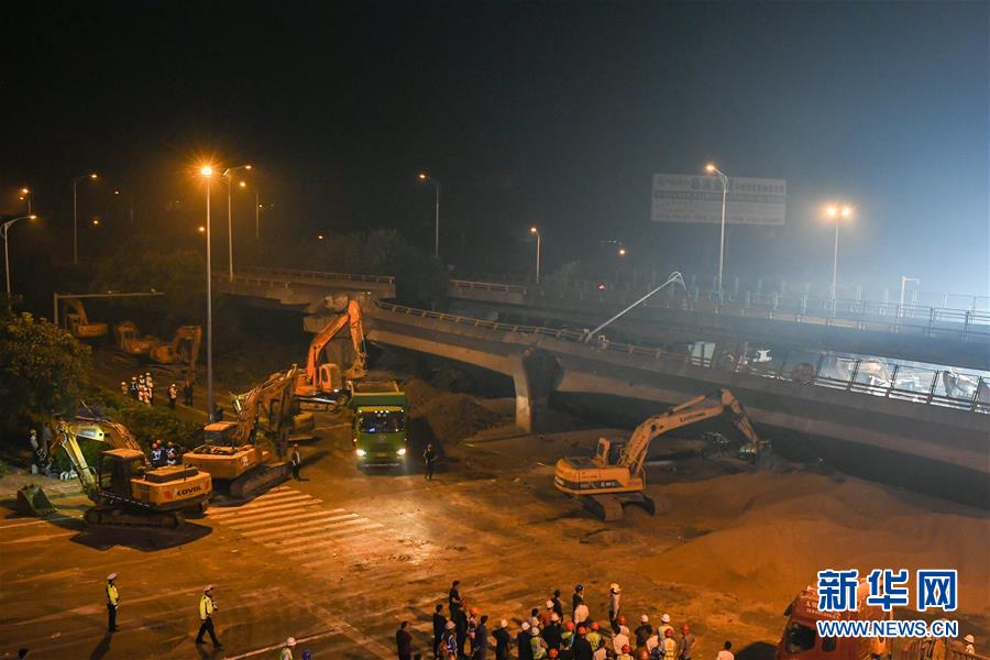 10月10日傍晚,江苏省无锡市一高架桥桥面倒塌,三辆小车被压。