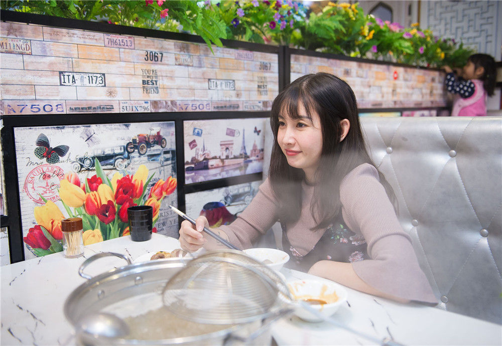 2019年2月28日,武汉,汉口香港路附近新开张的一家火锅店,就餐的客人可以坐在属于自己的小隔间里美滋滋吃一顿。如果想有一段美丽的“邂逅”,可以打开桌子上的特殊开关,对方若也恰好有此意,原本相隔的桌子会相通,可以一边烫火锅一边和陌生的有缘人聊天。吴铭/视觉中国 编辑/康娜