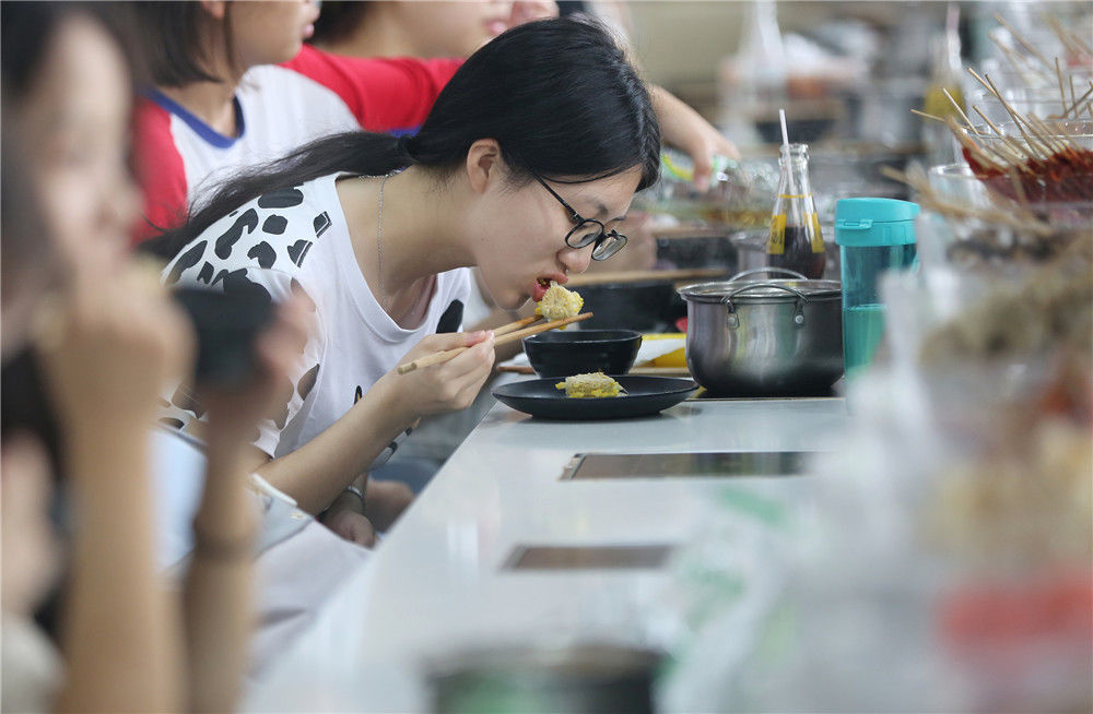 2018年9月12日,西安财经学院长安校区食堂,回转小火锅店内,一个人吃火锅的学生。视觉中国