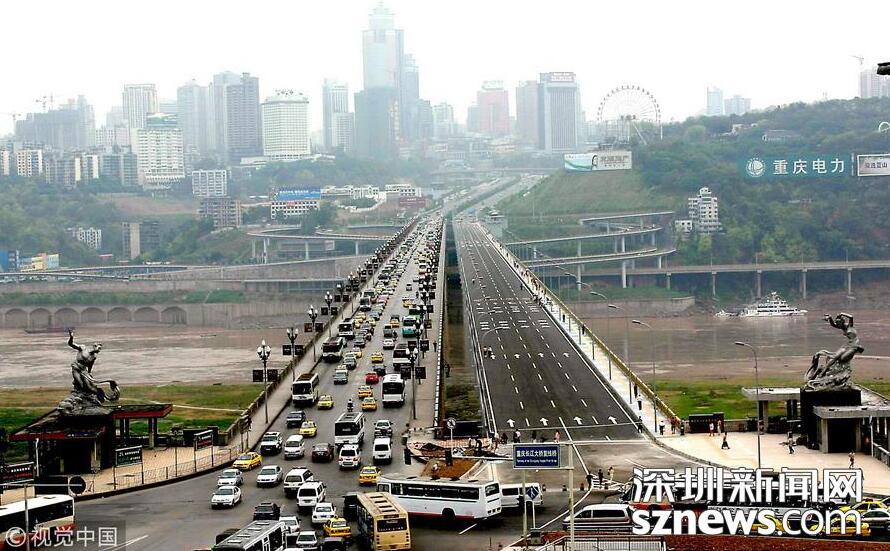 【跨度最大的梁桥——重庆石板坡长江复线大桥】重庆石板坡长江大桥复线桥跨径330米,于2003年12月正式动工,2006年8月28日竣工通车,全长1103.5米,宽19米,为单向四车道,设计日通行能力8万辆。