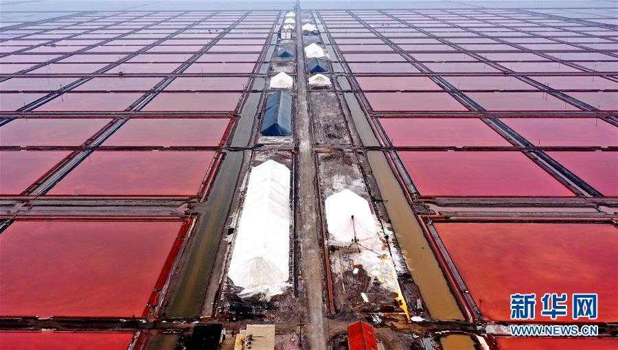 这是进入收获季节的鲁北盐场(10月9日无人机拍摄)。新华社记者 朱峥 摄