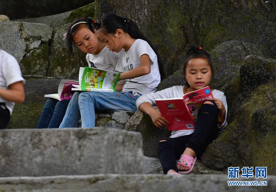 黔桂乌英苗寨的孩子们在阅读刚刚获赠的图书(10月11日摄)。
