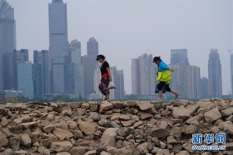 10月14日,两名女士走在赣江南昌段露出的河堤上。当日16时,江西省气候中心发布干旱橙色预警。由于连日少雨,赣江江西南昌段水位降至11.57米,大片沙洲露出水面。据江西省气象部门统计,7月下旬到10月初,江西省平均降雨量96毫米,比多年均值偏少约七成。据介绍,江西省水利部门正在进行科学调度,积极做好引水防旱抗旱工作,其中南昌、九江、上饶、景德镇4个设区市的13个县(市、区)共引水9717.6万立方米,保障灌溉面积123万余亩。 新华社记者 周密 摄