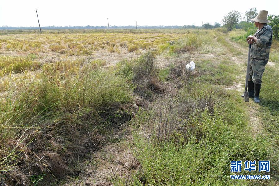 江西省南昌市南昌县蒋巷镇一农户在田里查看中稻的收割情况和晚稻的生长情况,农田两侧的水渠已干涸多日(10月10日摄)。 7月下旬至10月初,江西省平均降雨量为96毫米,比多年均值偏少约七成,排历史同期倒数第一位,持续的少雨天气导致江西省主要江河水位持续走低,多地出现不同程度的旱情。 针对当前旱情,江西各地纷纷采取措施,积极组织群众开展抗旱自救,力争将旱情带来的损失降到最低。 新华社记者 彭昭之 摄