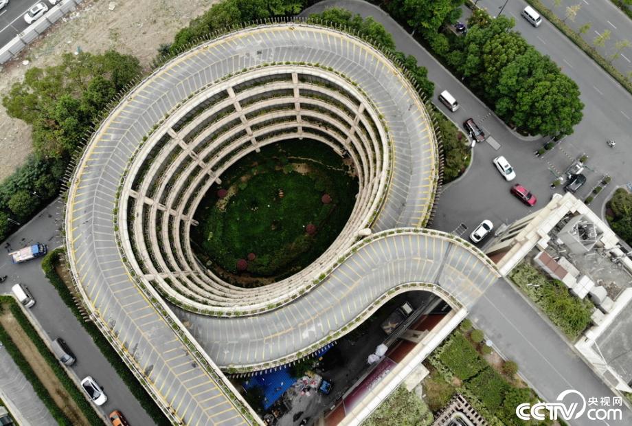 央视网消息:2019年10月13日,从空中航拍杭州一家环形停车场。近日,位于杭州城北一商场六楼楼顶的停车场,由于停车需要先开车绕行约6圈360度的坡道,才能停放汽车,因而被不少车主誉为杭州版“3D魔幻”停车场和杭州“最晕”停车场,还被不少网友冠以各种新奇的名称,从而走红网络和朋友圈,还吸引不少市民特地前来打卡拍摄。视觉中国