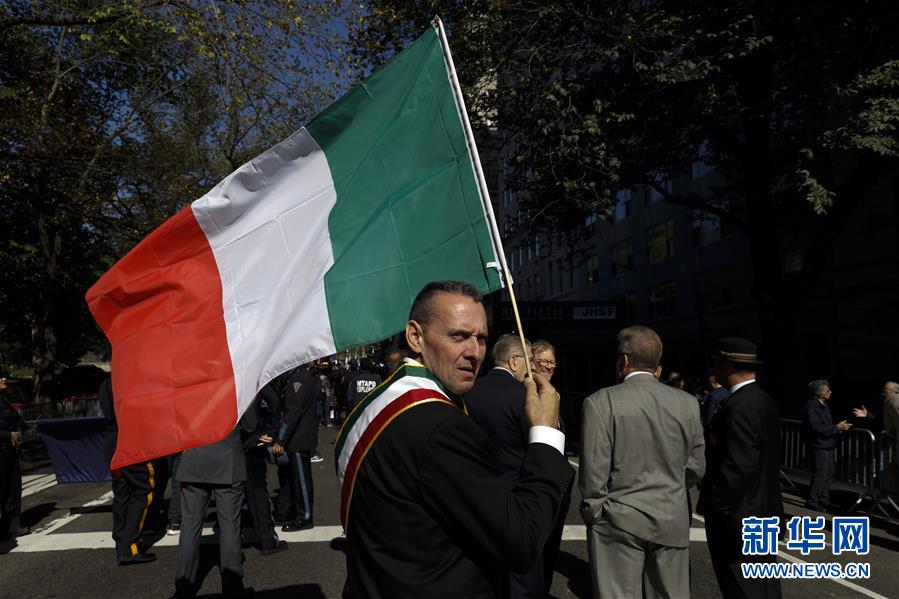 10月14日,在美国纽约曼哈顿第五大道,一名男子手举意大利国旗参加哥伦布日游行。当天,纽约举行哥伦布日游行,纪念意大利航海家克里斯托弗·哥伦布首次到达美洲大陆。哥伦布日游行也是美国最大的展示意大利文化传统的庆祝活动。新华社记者李木子摄