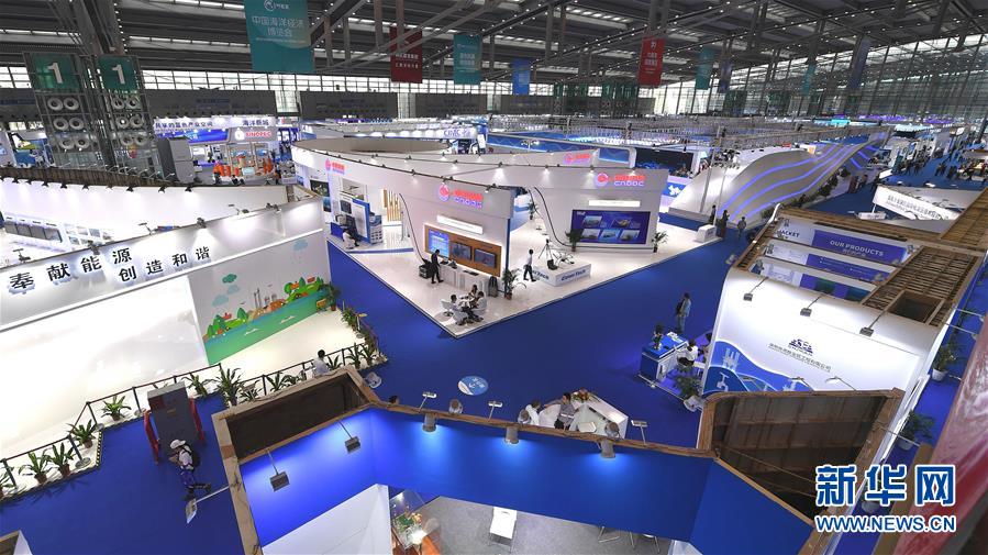 这是10月15日拍摄的2019中国海洋经济博览会现场。 当日,2019中国海洋经济博览会在深圳开幕,大批海洋“大国重器”及高新技术研发成果亮相。 中国海洋经济博览会被誉为“中国海洋第一展”。2019中国海洋经济博览会以“蓝色机遇、共创未来”为主题,吸引450余家企业和机构参展,将重点围绕现代港口建设、海洋高新技术与装备制造、海洋可再生能源利用、海水淡化与综合利用等热点领域,推出新技术成果,推进中外企业洽谈合作。 新华社记者毛思倩摄