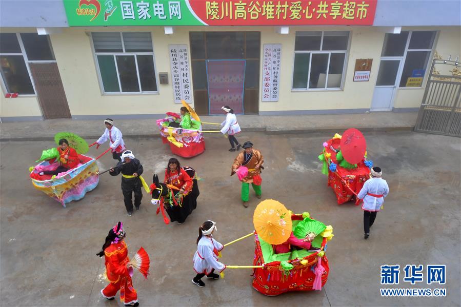 今年秋天,高谷堆村又迎来丰收,村民排练起当地传统民俗节目“推小车”,准备在县里举办的文艺汇演上好好展示一下脱贫后的精气神儿。 新华社记者 曹阳 摄