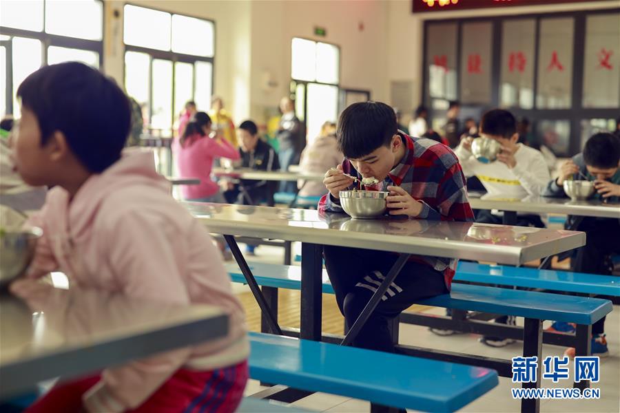 王太樊在学校食堂内吃午饭(10月10日摄)。 新华社记者 刘潺 摄