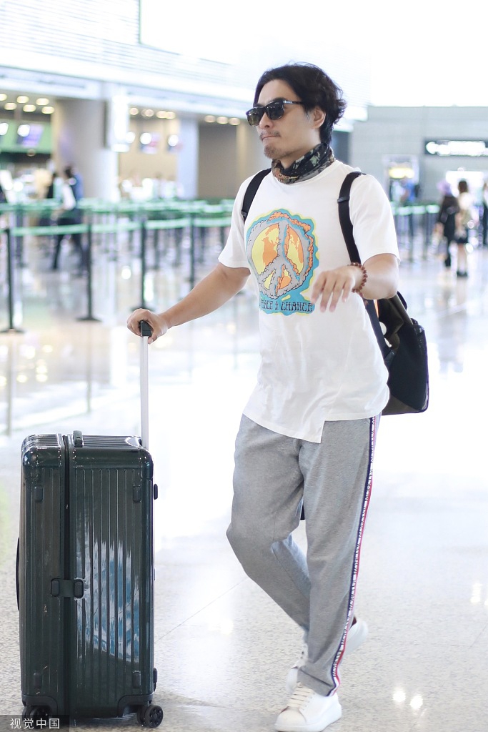 10月12日,陈龙亮相上海机场,陈龙留络腮胡发丝凌乱不平,独自背包提行李脚步轻快活力满满。