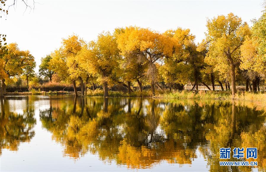 10月16日拍摄的内蒙古阿拉善盟额济纳旗境内的胡杨林。新华社记者彭源摄