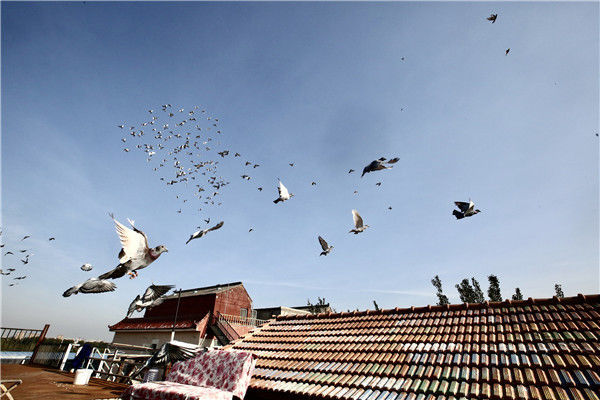 2019年10月15日,北京。鸽子从董先生的鸽笼中飞出,董先生是大兴信鸽协会成员,这次为国庆活动提供了一百多个鸽子。10月1日的新中国成立70周年庆典上放飞了7万羽和平鸽,场面蔚为壮观。据了解,这些和平鸽都是北京信鸽协会从鸽友处征集而来。在广场集体放飞后,这些信鸽绝大部分都回到了家中,而这些信鸽平时在家中是如何训练和生活的呢?北京青年报记者采访了部分鸽友,揭秘信鸽的日常生活和训练。