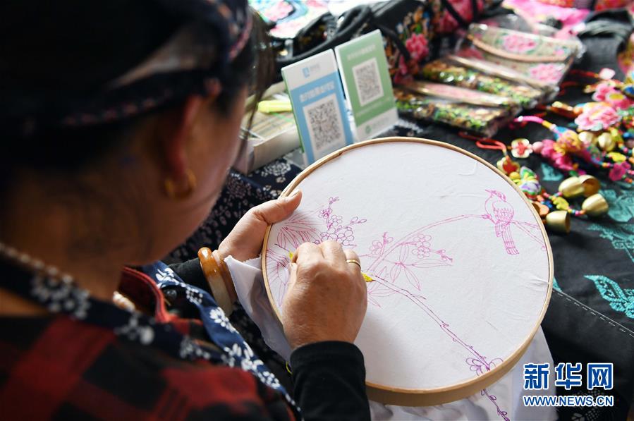 10月16日,团结村的一名“巧媳妇”在刺绣。 新华社记者 杨宗友 摄