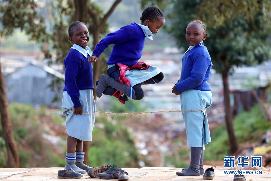 10月16日,在肯尼亚内罗毕基贝拉贫民窟,孩子们在放学后玩耍。新华社记者王腾摄