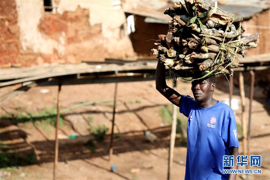 10月16日,在肯尼亚内罗毕基贝拉贫民窟,一名男子运送劈柴。新华社记者王腾摄