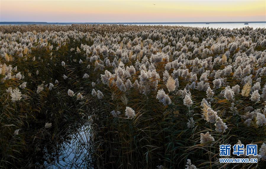 这是10月17日拍摄的居延海岸边的芦苇荡。 新华社记者 彭源 摄
