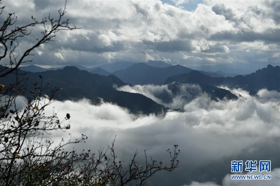 10月17日,游客在汉中市南郑区龙头山风景区拍照。 陕西省汉中市南郑区龙头山风景区位于川陕交界处米仓山主梁。龙头山景区常年云雾缭绕,宛如仙境,还有奇石、云海、彩林、雾凇等景观令游客流连忘返。 新华社记者 张博文 摄