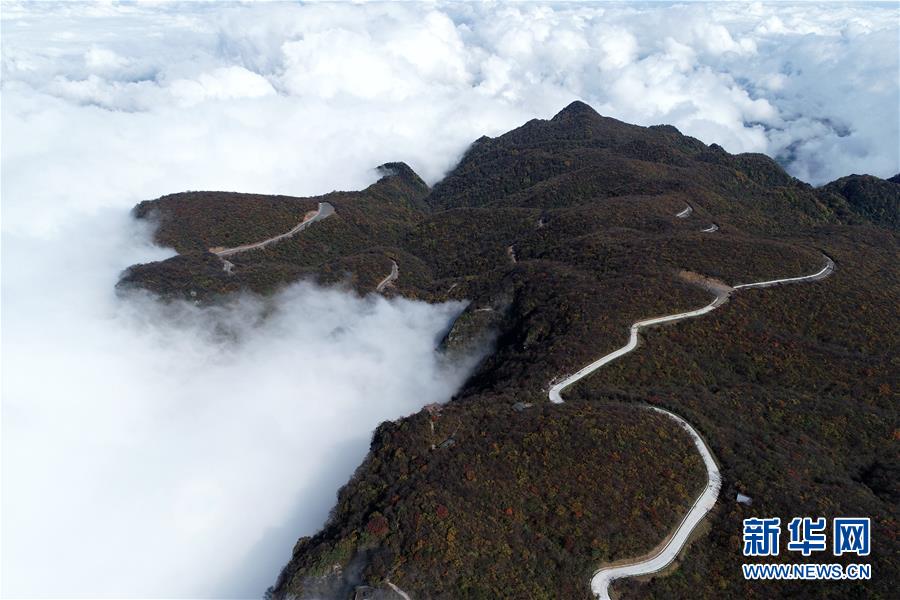 10月17日拍摄的汉中市南郑区龙头山风景区(无人机拍摄)。 新华社记者 张博文 摄