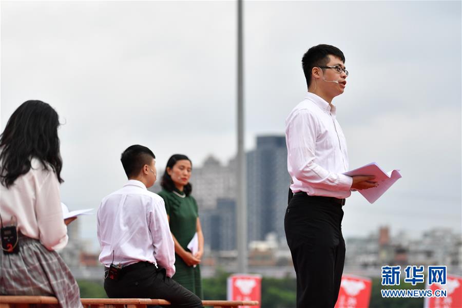 10月19日,参与秋祭活动的年轻人在活动现场表演行动剧《激进1949》。 新华社记者 陈斌 摄
