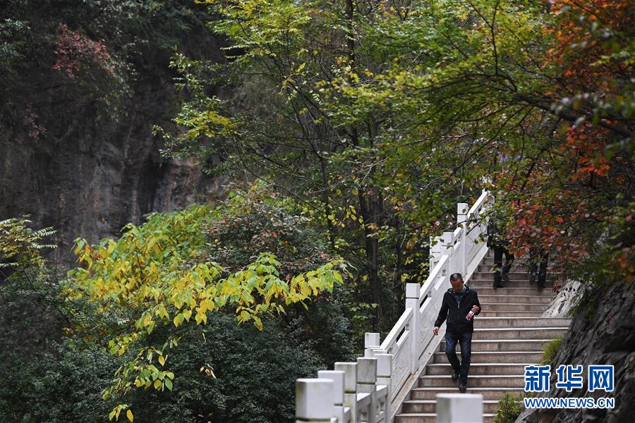 10月16日,游客在西狭颂景区内游览。新华社记者陈斌摄