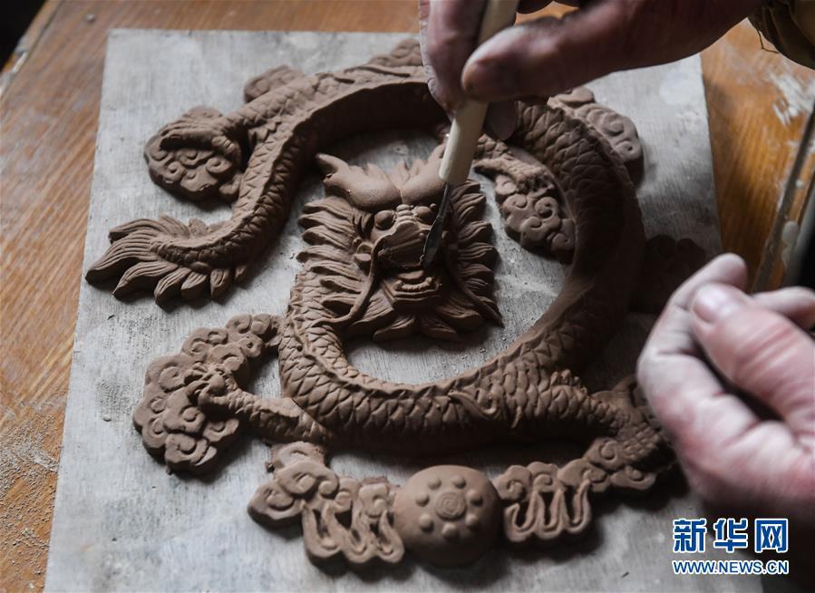 2月16日,陈新华的一名徒弟在进行堆塑创作。新华社记者徐昱摄