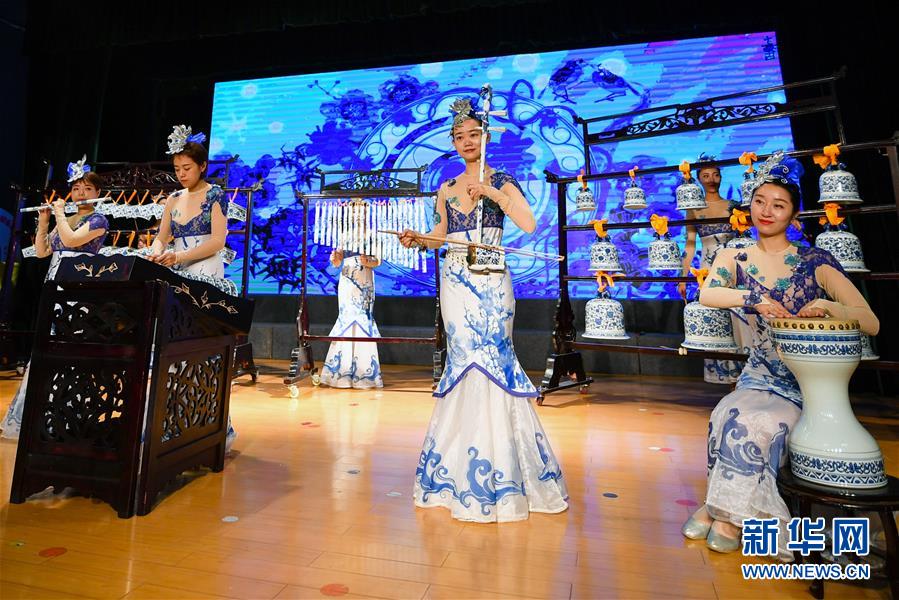 景德镇市“青花女子瓷乐队”在景德镇市文化馆为观众演奏(10月13日摄)。新华社记者胡晨欢摄