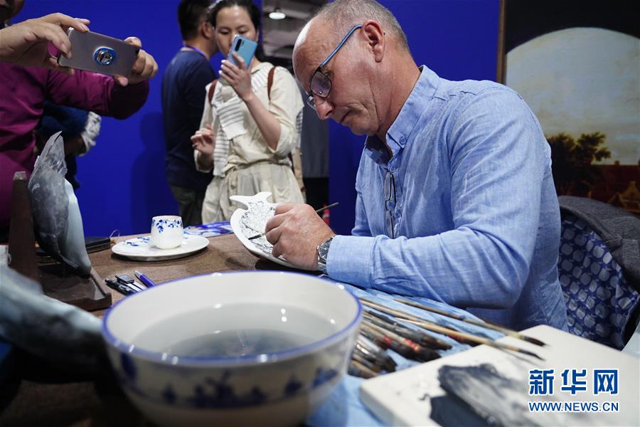 来自荷兰的陶瓷制作者在景德镇瓷博会上展示陶瓷制作(10月18日摄)。新华社记者周密摄