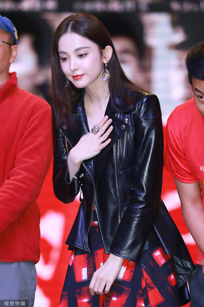 古力娜扎为新电影站台 红唇配皮衣又飒又美 尽显迷人魅力
