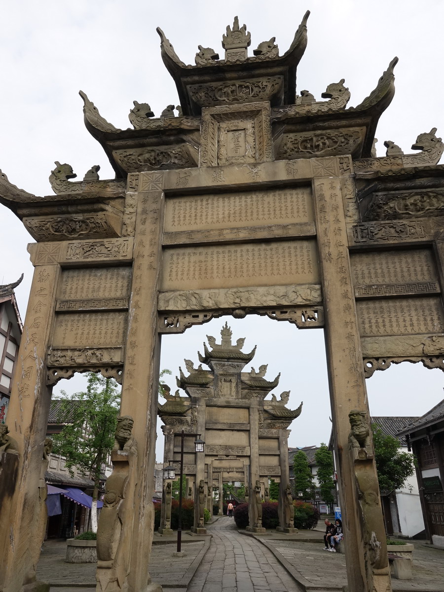隆昌石牌坊大多为四柱三门三重檐五滴水石质牌楼式建筑,平均面宽9米,通高11米,坊间距离最近处仅10余米。李仁奇摄