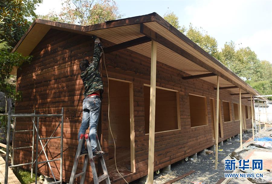 10月24日,一名工人在对班竹村新建的旅游设施进行外部装修。新华社记者韩传号摄