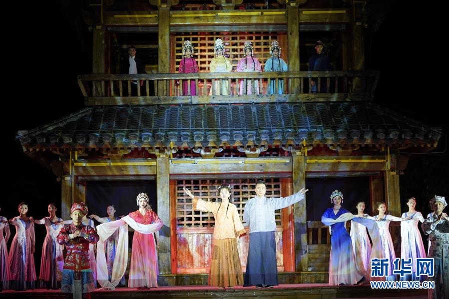 10月24日,演员在表演实景剧《那年芳华》。 河北省唐山市在南湖景区打造沉浸式实景剧《那年芳华》。该剧以南湖景区的自然景观为载体,利用光影艺术,展现了梨园人的家国情怀。 新华社记者 邢广利 摄