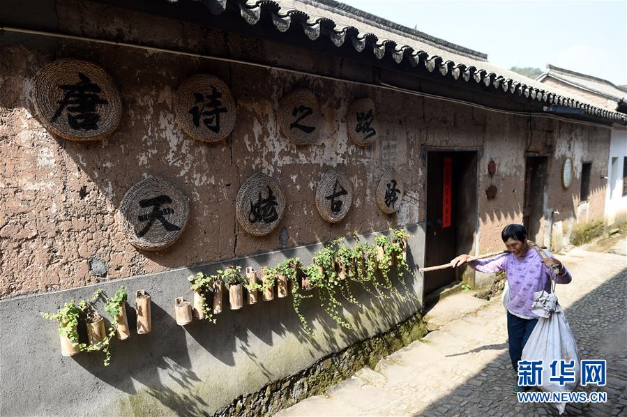 10月24日,班竹村一名老人挑货走在村内的道路上。浙江省新昌县境内的班竹村位于天姥山脚下,被称为“天姥门户”,曾是浙东“唐诗之路”上的驿站。近年来,班竹村依托深厚的文化底蕴大力发展乡村旅游,全村“人人参股、户户分红”,将整个村庄打造为旅游综合体,今年以来班竹村旅游收入已超过800万元。新华社记者韩传号摄