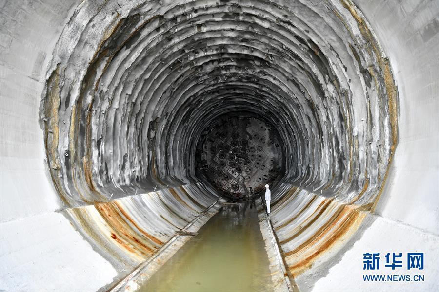 施工人员在派墨农村公路的多雄拉隧道查看情况(10月24日摄)。新华社记者李鑫摄