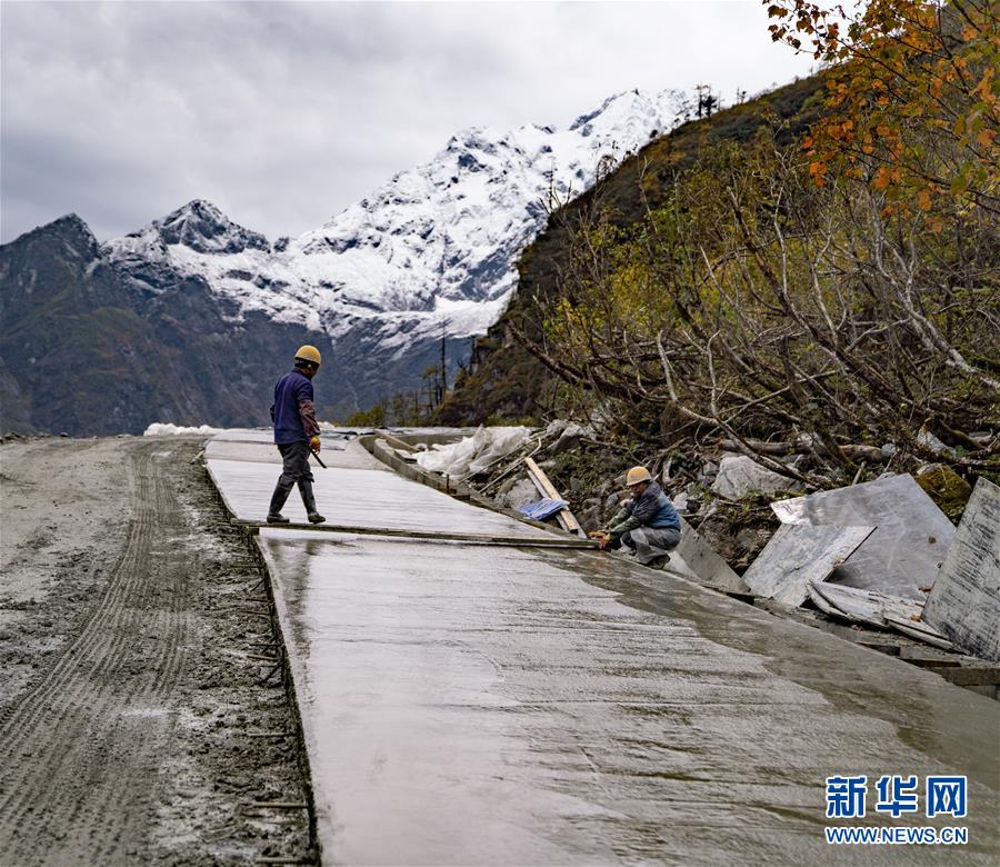 工人们在派墨农村公路施工现场作业(10月24日摄)。新华社记者普布扎西摄